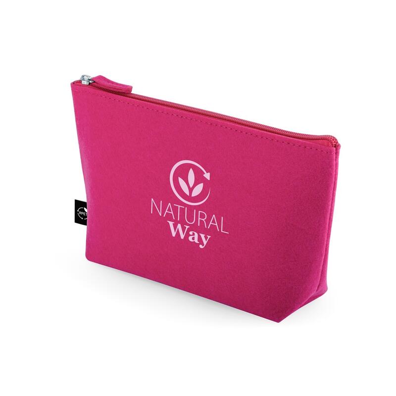 Spacious, multifunctional bag in recycled felt (100% rPET) with zip fastening. Available in a wide range of colours. 250 x 140 x 70 mm