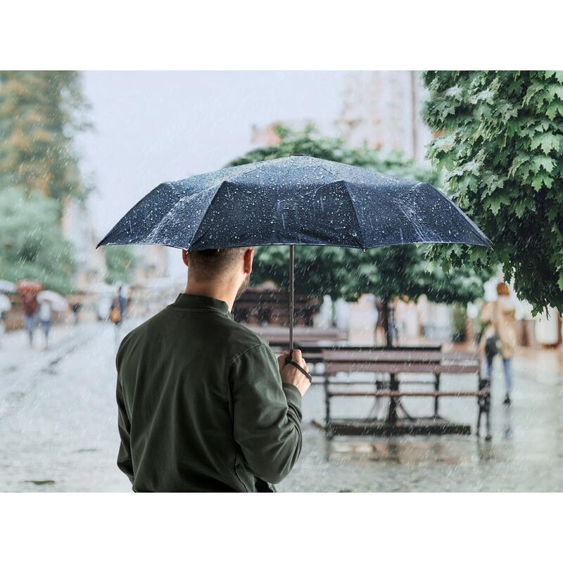 Recycled polyester (100% rPET) 190T pongee umbrella, with fibreglass ribs and PP handle. Foldable umbrella in 3 sections with automatic opening and windproof. Supplied in bag. Umbrella: ø990 x 290 mm | Bag: ø55 x 240 mm