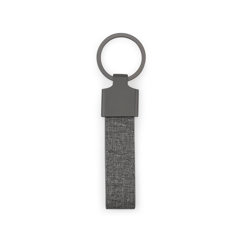 RAVEN. Rectangular-shaped keyring made of metal and recycled pet (30% recycled)