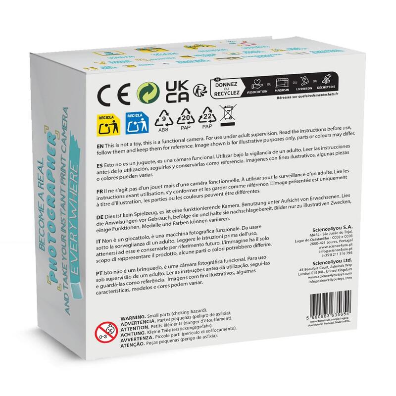 An educational toy that turns every moment into a special memory. Children can take photos and print them straight away, personalising them with creative and fun effects. But the fun doesn’t stop there: it also lets you record videos, listen to music and play classics like Snake and Tetris. Includes 2 rolls of printing paper. Recommended age: 6+. 80 x 135 x 55 mm