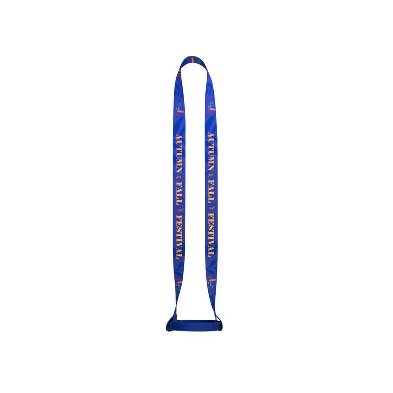 Polyester sublimation lanyard with silicone cup holder. Personalisation can be on both sides of the ribbon. Made in Europe. Prices quoted include sublimation personalisation. Personalisation area/side: 20 x 920 mm Lanyard: 20 x 480 mm | Cupholder: ø65 x 12 mm (210 mm long)