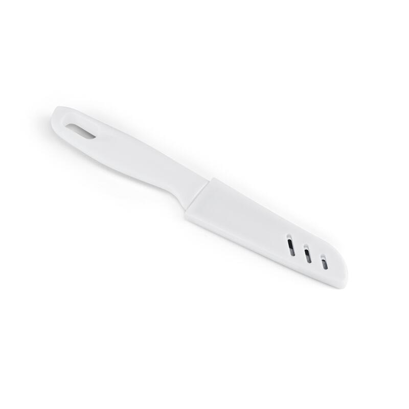 Stainless steel and PP knife with protective cover. 205 x 31 x 13 mm