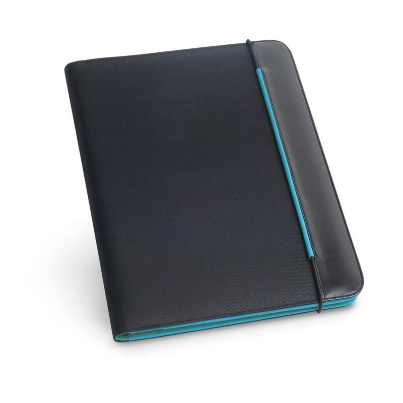 A4 folder in PU and 800D with microfibre interior. with elastic band closure. Contains a 40 lined pages pad (60 g/m²), 3 pockets and a pen holder (pen not included). 245 x 315 x 15 mm