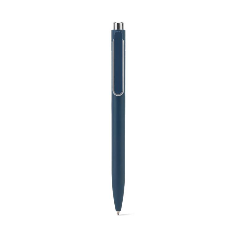 Bamboo ballpoint with chrome-plated aluminium details. It has a clip, a touch tip at the top and blue writing. ø11 x 150 mm