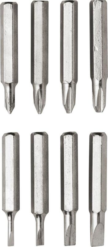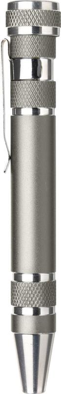 Steel pen-shaped pocket screwdriver. Including: four flat-head and four cross-head screwdriver bits.From €1.92