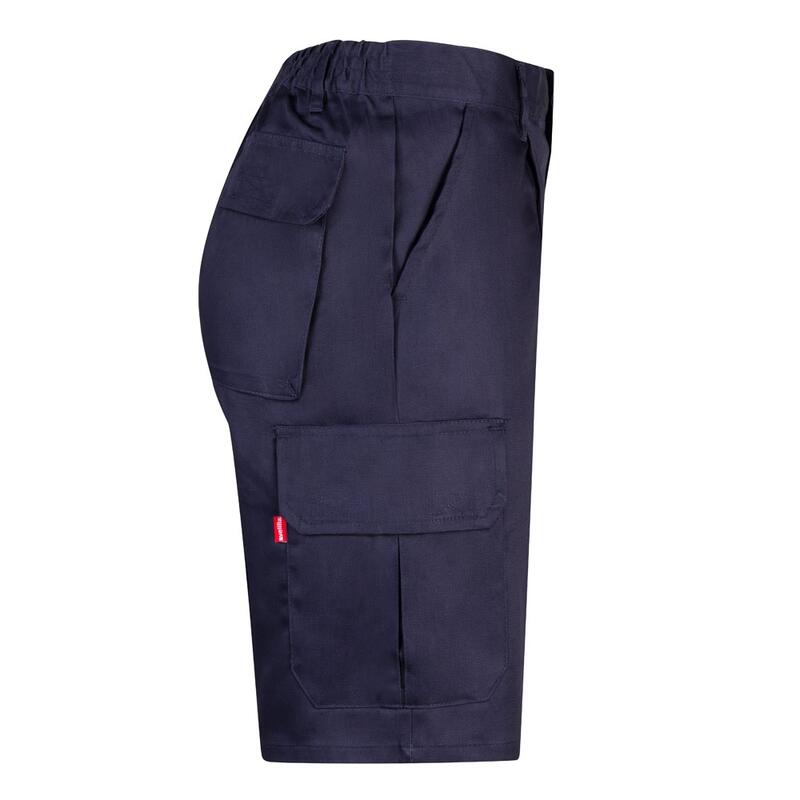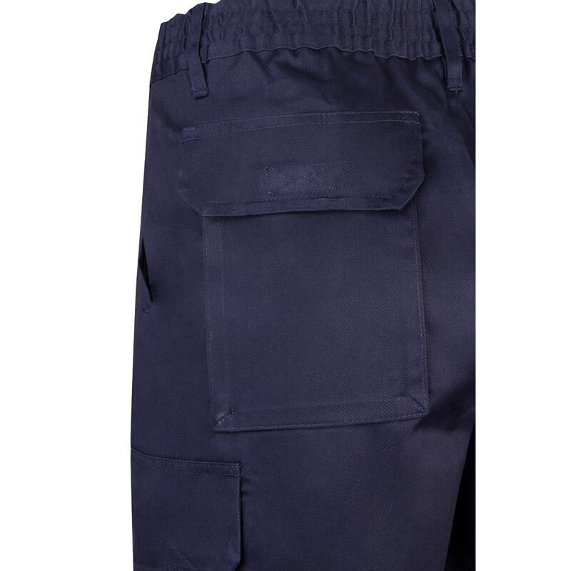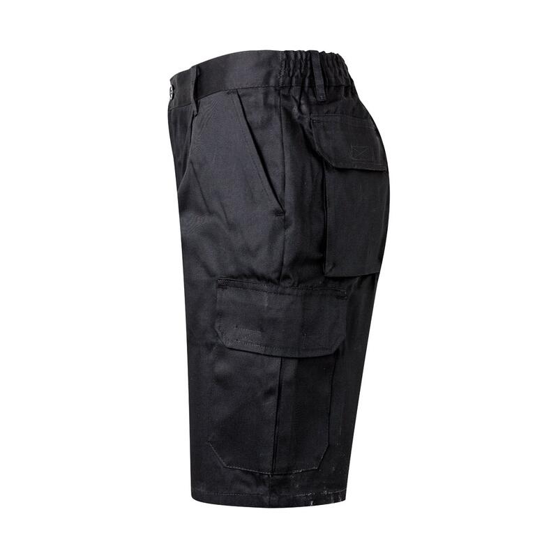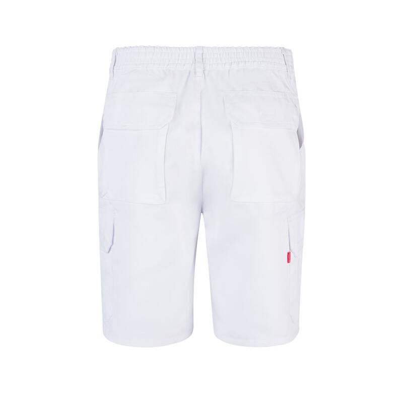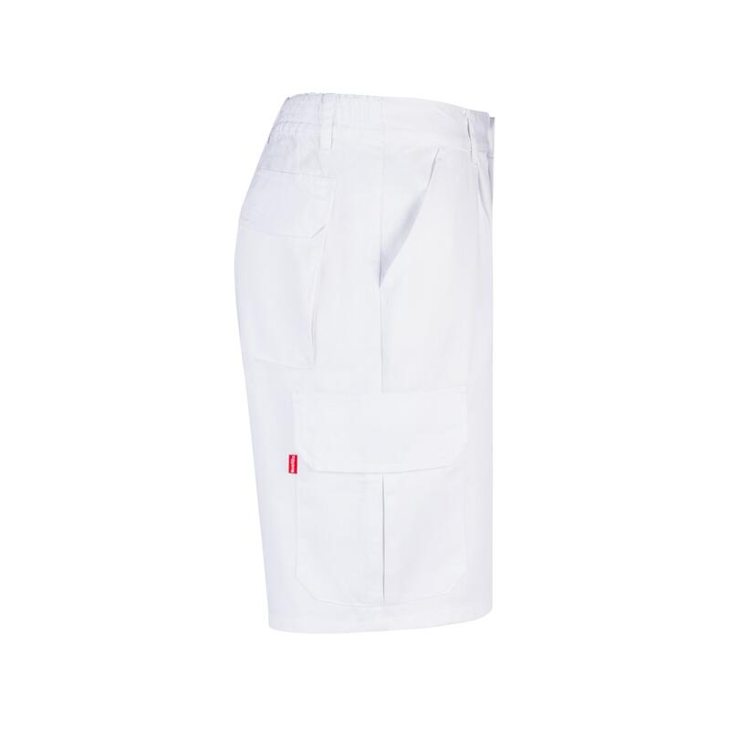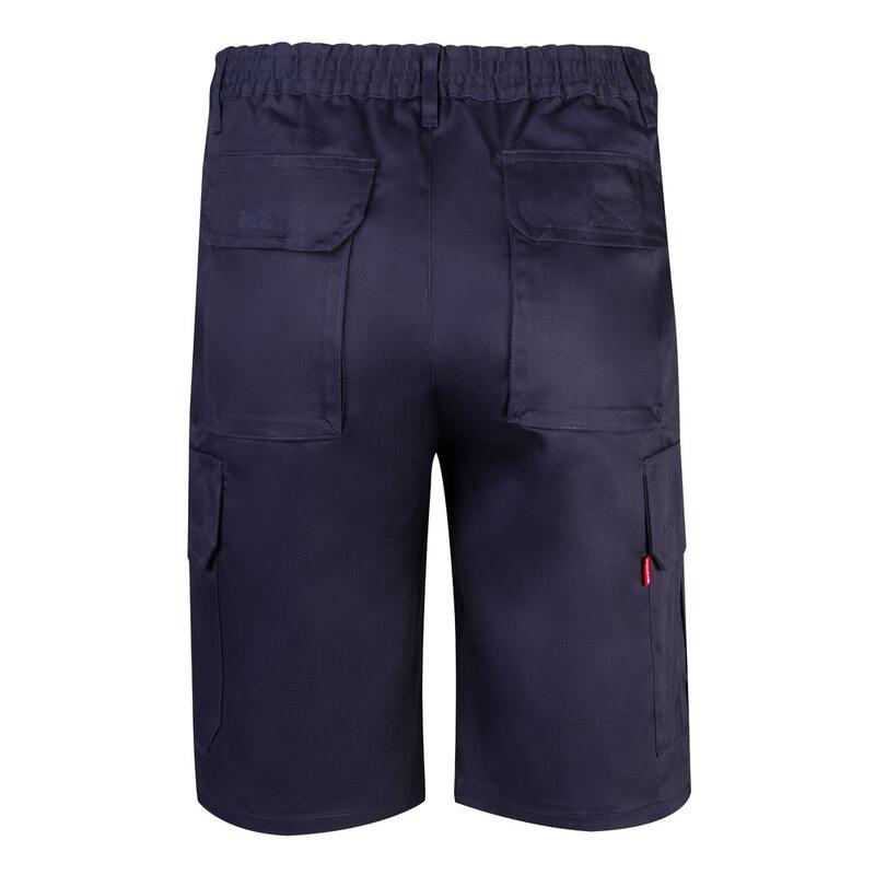 Bermuda shorts in multi-pocket twill (200g/m²), cotton (35%) and polyester (65%). With elasticated waistband and six pockets (2 French pockets, 2 side pockets and 2 back bellows pockets). Size: 36, 38, 40, 42, 44, 46, 48, 50, 52, 54, 56, 58, 60