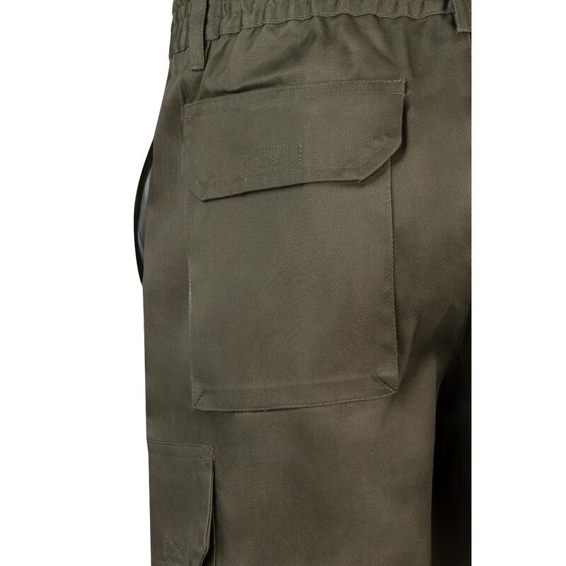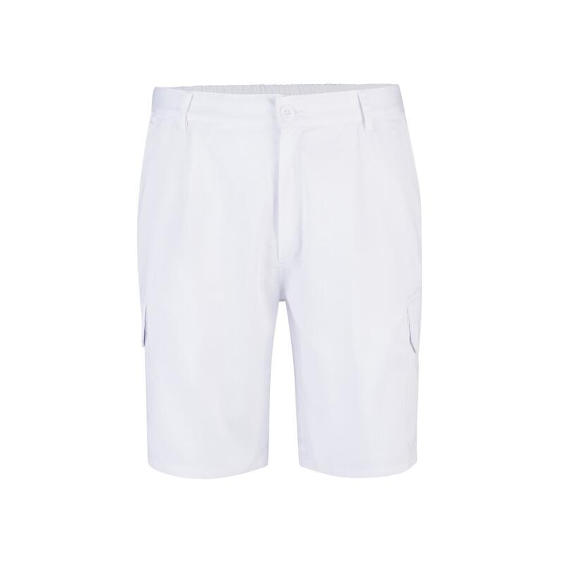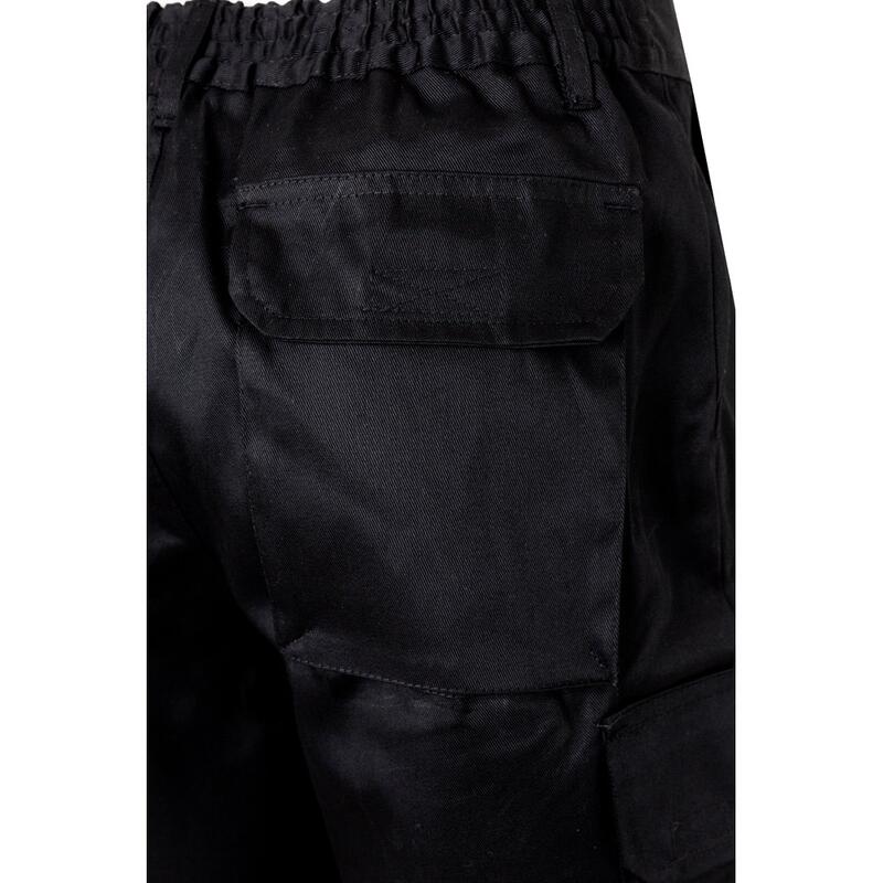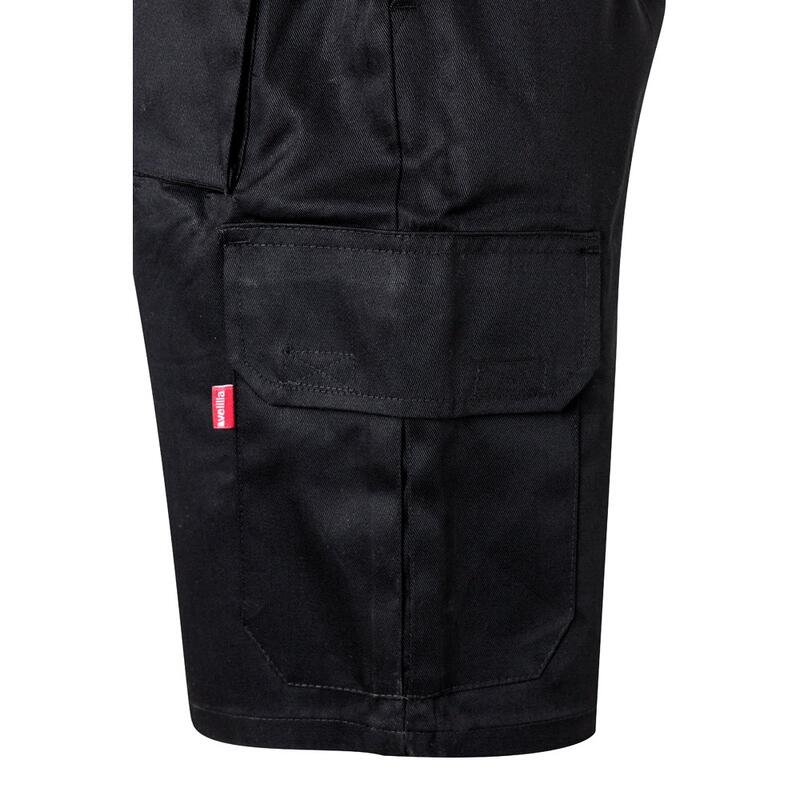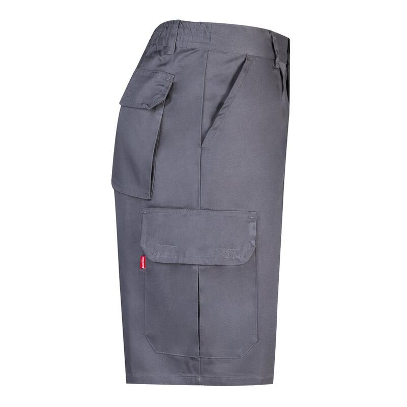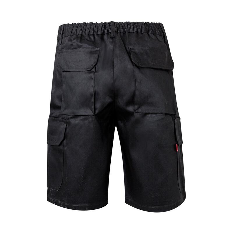 Bermuda shorts in multi-pocket twill (200g/m²), cotton (35%) and polyester (65%). With elasticated waistband and six pockets (2 French pockets, 2 side pockets and 2 back bellows pockets). Size: 36, 38, 40, 42, 44, 46, 48, 50, 52, 54, 56, 58, 60