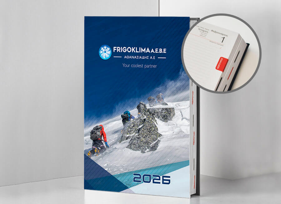 Ημερολόγιο Ατζέντα Γραφείου βιβλιοδετημένο, ημερήσιο με σκληρό έγχρωμο εξώφυλλο εκτυπωμένο με δικό σας δημιουργικό ή σχεδιασμένο ειδικά για εσάς από το δημιουργικό μας τμήμα και με δυνατότητα προσωποποίησης στο εξώφυλλο.
