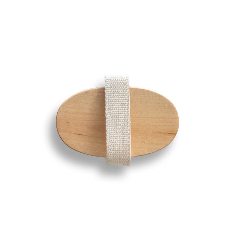 Ξύλινη βούρτσα μασάζ κατά της κυτταρίτιδας (250 g/m²) . Με βαμβακερή λαβή που βοηθάει στο μασάζ του σώματος. Παραδίδεται σε κουτί χειροτεχνίας. Καθώς το προϊόν είναι κατασκευασμένο από φυσικά υλικά, το χρώμα του προϊόντος καθώς και το αποτέλεσμα της εκτύπωσης ενδέχεται να διαφέρουν από προϊόν σε προϊόν. 130 x 75 x 40 mm | Κουτί: 135 x 80 x 45 mm