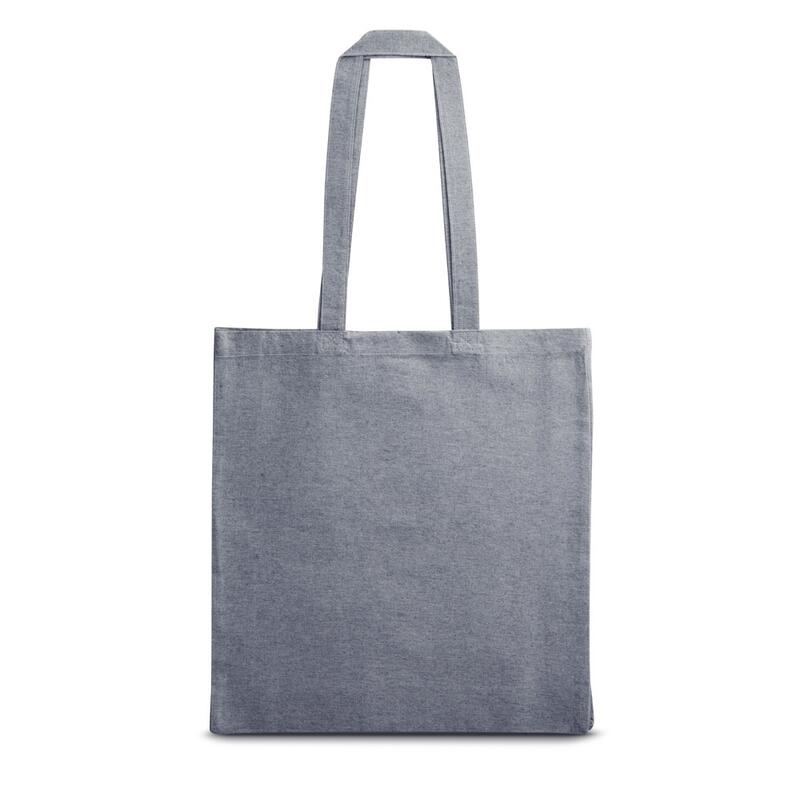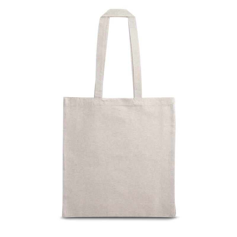 Τσάντα με ανακυκλωμένο βαμβάκι (70%) και πολυεστέρα (30% rPET) (140 g/m²) με χειρολαβές 68 cm. Το ανακυκλωμένο βαμβάκι δεν είναι βαμμένο. Η πρώτη ύλη χρησιμοποιείται στην αρχική της μορφή και στο χρώμα της, χωρίς τη χρήση χημικών ουσιών βαφής ή λεύκανσης, συμβάλλοντας έτσι στη μείωση των ρύπων. 380 x 410 x 100 mm