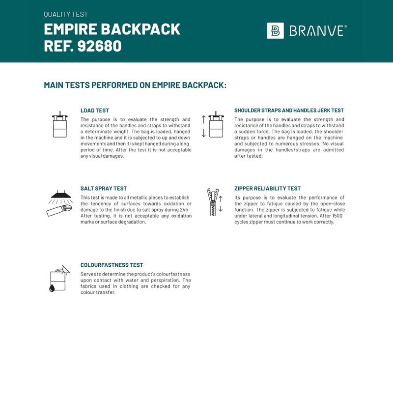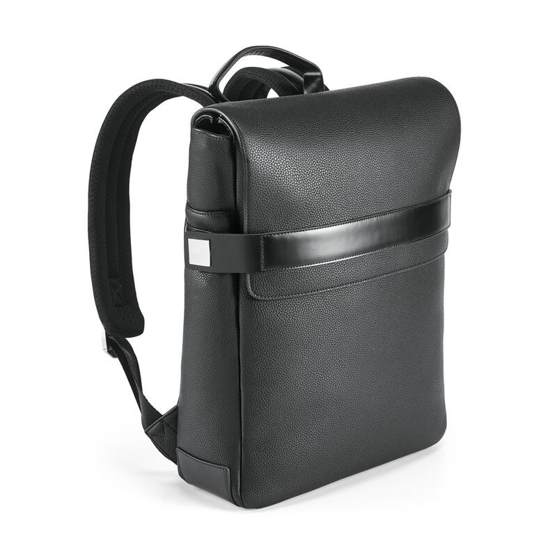 Εκλεπτυσμένο σακίδιο από πολυπροπυλένιο υψηλής ποιότητας, με καπάκι που κρύβει την μπροστινή τσέπη και την κύρια θήκη. Κύριο διαμέρισμα με φερμουάρ, εσωτερικό με 2 ενισχυμένα διαχωριστικά για φορητούς υπολογιστές έως 14" και tablet έως 10.5" και διάφορες τσέπες. Περιλαμβάνει πλευρικά φερμουάρ με ισχυρούς μαγνήτες και μεταλλικές πλάκες ιδανικές για εξατομίκευση, πλήρως παραγεμισμένη πλάτη και ιμάντες ώμου και ιμάντα μεταφοράς καροτσιού. Χωρητικότητα έως 9 λίτρα. Παραδίδεται σε μη υφασμένη τσάντα. Το προϊόν περιλαμβάνει έκθεση ελέγχου ποιότητας. Σακίδιο πλάτης: 290 x 370 x 90 mm | Τσάντα: 500 x 500 x 80 mm