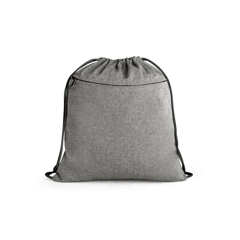 Τσάντα με κορδόνι από ανακυκλωμένο βαμβάκι (70%), πολυεστέρα (30% rPET) (140 g/m²), μπροστινή τσέπη με διακριτικό φερμουάρ και βαμβακερούς ιμάντες για κλείσιμο. Το ανακυκλωμένο βαμβάκι δεν είναι βαμμένο. Η πρώτη ύλη χρησιμοποιείται στην αρχική της μορφή και στο χρώμα της, χωρίς τη χρήση χημικών ουσιών βαφής ή λεύκανσης, συμβάλλοντας έτσι στη μείωση των ρύπων. 370 x 410 mm