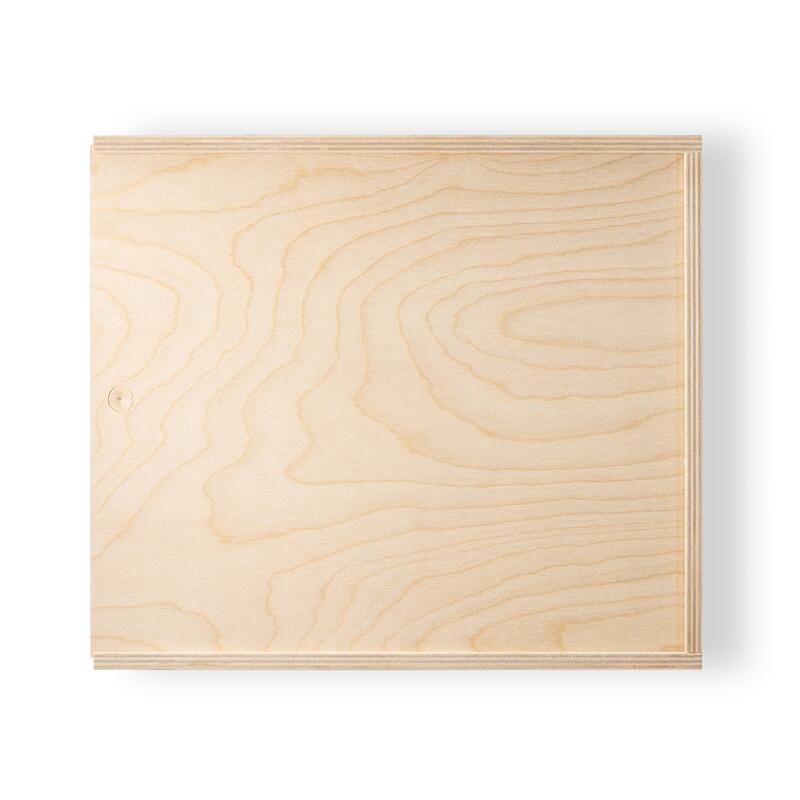 Κουτί από κόντρα πλακέ με συρόμενο καπάκι, στο ίδιο υλικό. Μέγεθος L. Καθώς το προϊόν είναι κατασκευασμένο από φυσικά υλικά, το χρώμα του προϊόντος καθώς και το αποτέλεσμα της εκτύπωσης ενδέχεται να διαφέρουν από προϊόν σε προϊόν. Εσωτερικό: 330 x 290 x 97 mm | εξωτερικές: 348 x 308 x 111 mm