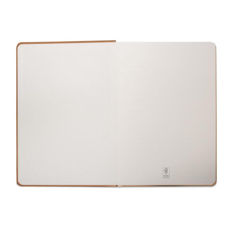 Σημειωματάριο A5, με άκαμπτο εξώφυλλο από ανθεκτικό στο νερό χαρτί κραφτ και στρογγυλεμένες γωνίες. Με 160 σελίδες (70 g/m²) με γραμμές σε χαρτί χρώματος ελεφαντόδοντου από πιστοποιημένο υλικό FSC™ και άλλα ελεγχόμενα υλικά, διαχωριστική ταινία και λάστιχο στο διαγνωστικό για το κλείσιμο του τετραδίου. 147 x 210 mm
