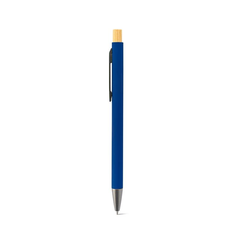 Στυλό διαρκείας από ανακυκλωμένο αλουμίνιο (100% RAL) με φινίρισμα από καουτσούκ. Ο μινιμαλιστικός σχεδιασμός του συνδυάζει ματ μεταλλικές γκρι λεπτομέρειες και ένα κουμπί από μπαμπού στο πάνω μέρος. Διαθέτει κλιπ και μπλε μελάνι. Καθώς το προϊόν είναι κατασκευασμένο από φυσικά υλικά, το χρώμα του προϊόντος καθώς και το αποτέλεσμα της εκτύπωσης ενδέχεται να διαφέρουν από προϊόν σε προϊόν. ø9 x 135 mm