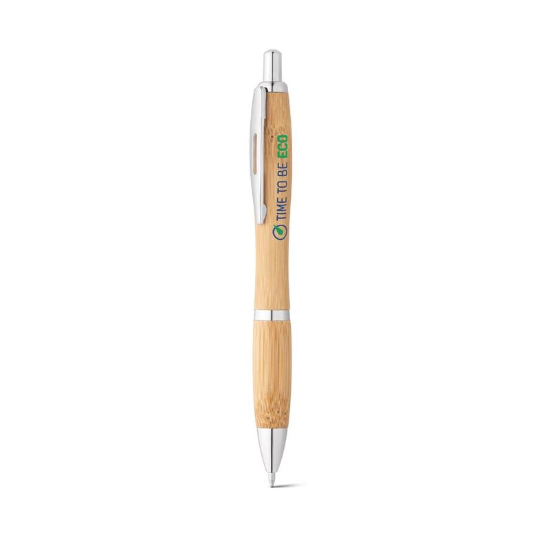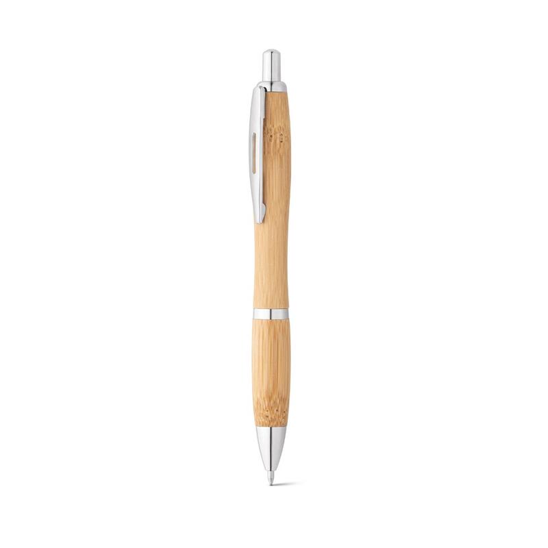 Μπαμπού στυλό με κλιπ και μεταλλικές λεπτομέρειες. Καθώς το προϊόν είναι κατασκευασμένο από φυσικά υλικά, το χρώμα του προϊόντος καθώς και το αποτέλεσμα της εκτύπωσης ενδέχεται να διαφέρουν από προϊόν σε προϊόν. ø13 x 143 mm