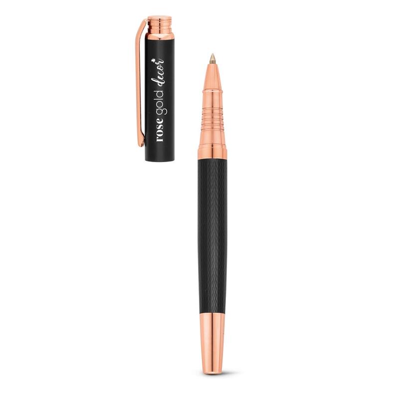 Μεταλλικός κύλινδρος με μαλακό ανάγλυφο στο σώμα. Μαύρο μελάνι. Παραδίδεται σε παραγεμισμένο κουτί δώρου. ø11 x 137 mm | Θήκη: 179 x 55 x 30 mm