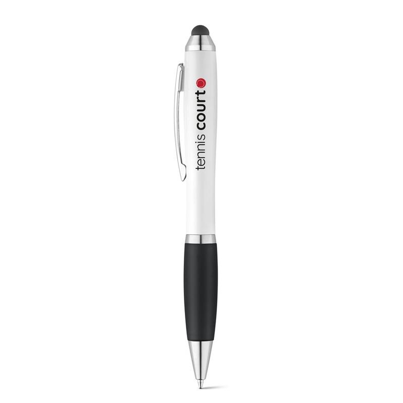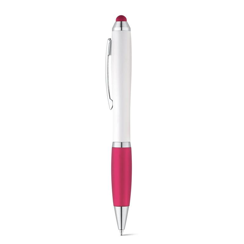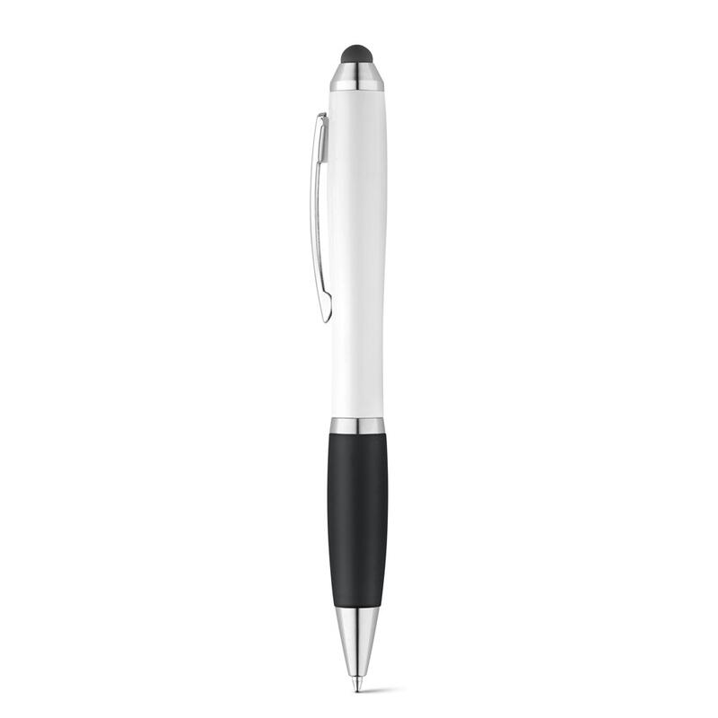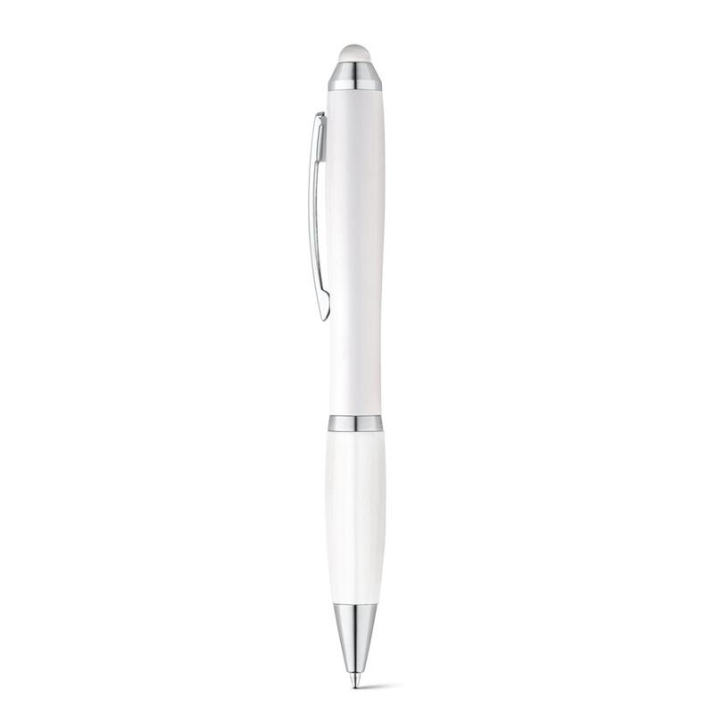 Στυλό ABS με μεταλλικό κλιπ και μηχανισμό περιστροφής. Κατάλληλο για χρήση σε συσκευές χάρη στην άκρη αφής και την άνετη γραφή με αντιολισθητική προστασία, διαθέσιμο σε μεγάλη γκάμα χρωμάτων. Μπλε μελάνι. ø11 x 135 mm