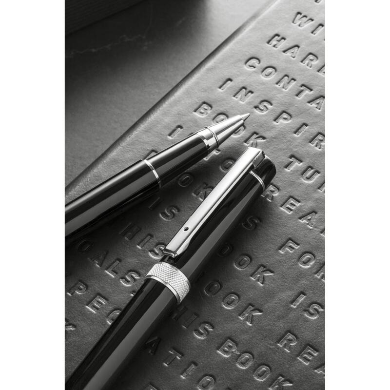 Σετ από μεταλλικό ρολό και στυλό με στρεπτό μηχανισμό και κλιπ. Μαύρο μελάνι. Παραδίδεται σε παραγεμισμένο κουτί δώρου. Στυλό: ø13 x 132 mm | Roller: ø13 x 135 mm | Κουτί: 171 x 71 x 31 mm