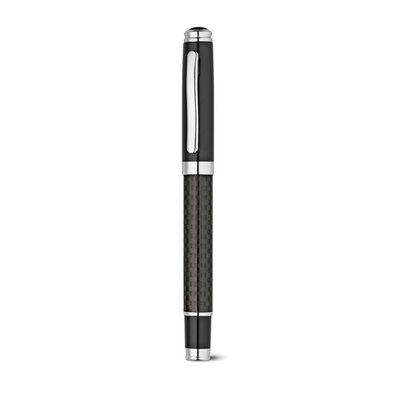Σετ με μεταλλικό και ανθρακονημάτινο στυλό rollerball και στυλό με μπίλια, και τα δύο με κλιπ. Στυλό με μπίλια με μηχανισμό περιστροφής. Παραδίδεται σε θήκη PU με μαξιλάρι. Μαύρο μελάνι. Στυλό: ø13 x 142 mm | Roller: ø13 x 140 mm | Κουτί: 171 x 67 x 38 mm
