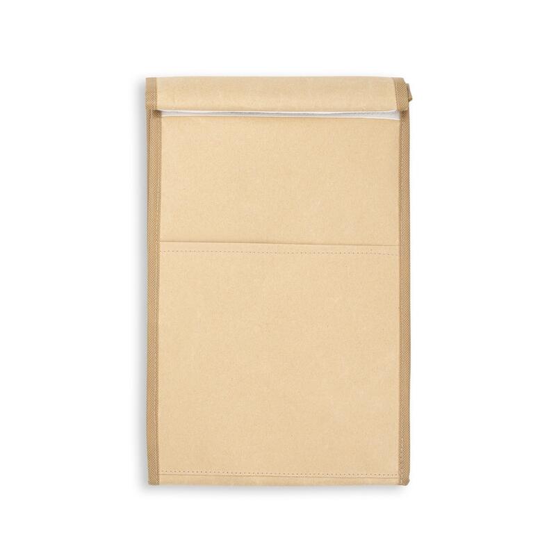 Χάρτινη ισοθερμική τσάντα έως 4L με non-woven επένδυση και εσωτερικό με θερμομόνωση αλουμινίου. Κλείσιμο με συνδετήρα με γάντζο και βρόχο και μπροστινή τσέπη. Κλειστό: 195 x 350 x 110 mm | Ανοιχτό: 195 x 410 x 110 mm