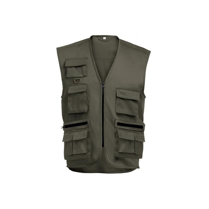 Πολυεστερικό (65%) και βαμβακερό (35%) γιλέκο με πολλές τσέπες (200 g/m²) με υδατοαπωθητική επεξεργασία. Κατάλληλο για δημοσιογράφους και άλλα επαγγέλματα πεδίου. Μέγεθος: 3XL