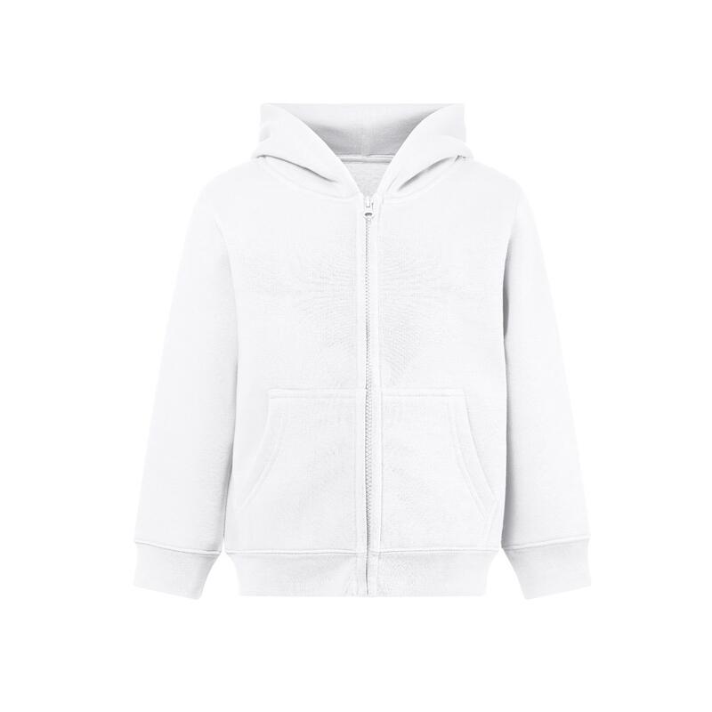 Παιδικό μπουφάν επεξεργασμένο με ένζυμα σε Αμερικα Τερρυ(50% βαμβάκι με πρακτικές βιώσιμης καλλιέργειας) και 50% ανακυκλωμένος πολυεστέρας (320 g/m²). Κουκούλα χωρίς κορδόνια περίσφιξης και επένδυση σε ζέρσεϊ στο ίδιο χρώμα με το μπουφαν, σύμφωνα με τα πρότυπα ασφαλείας της Ευρωπαϊκής Ένωσης. Περιέχει 1x1 rib μανσέτες και κάτω μέρος, 2 πλαϊνές τσέπες, φερμουάρ με συρόμενο, εξολκέα και λαναρισμένο εσωτερικό. Μέγεθος: 4, 6, 8, 10, 12