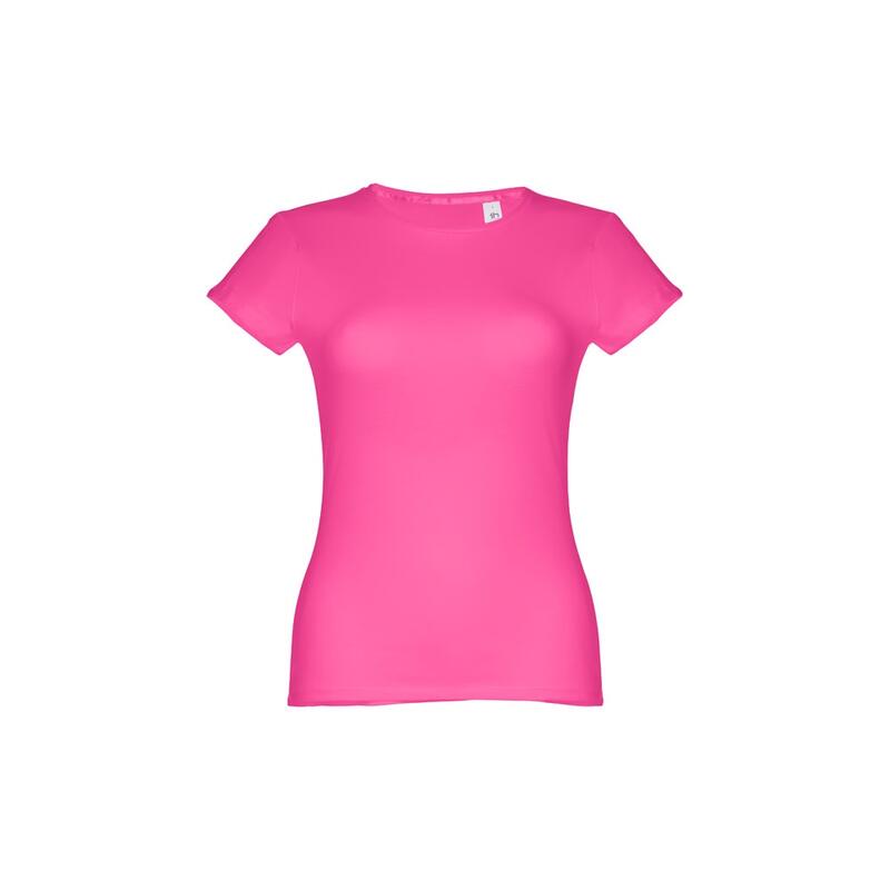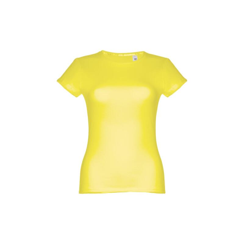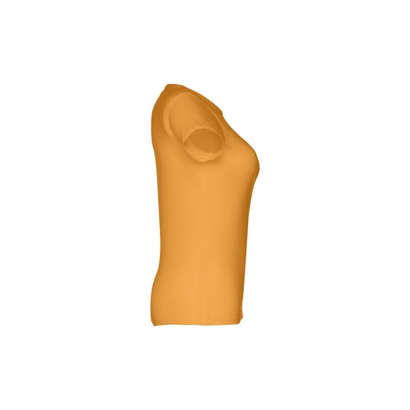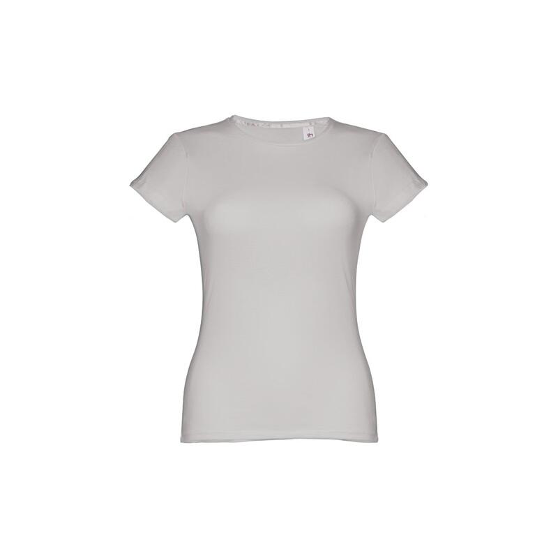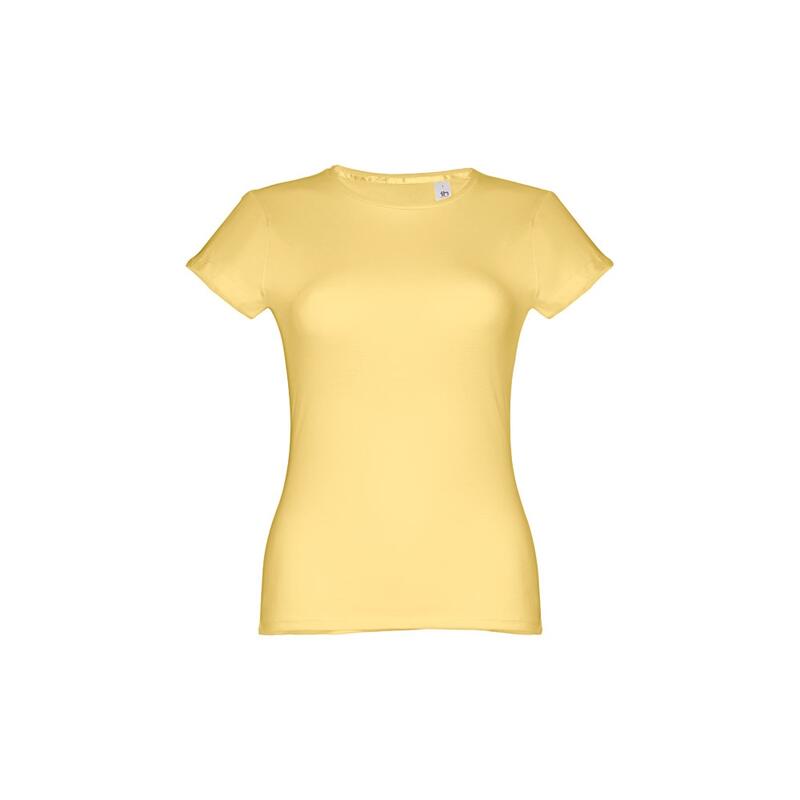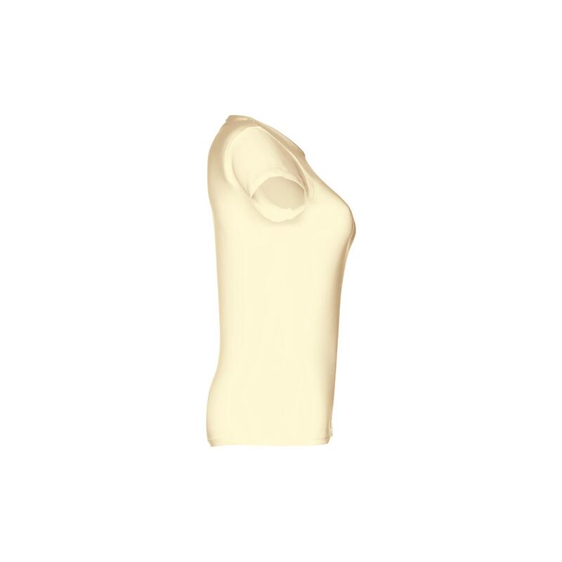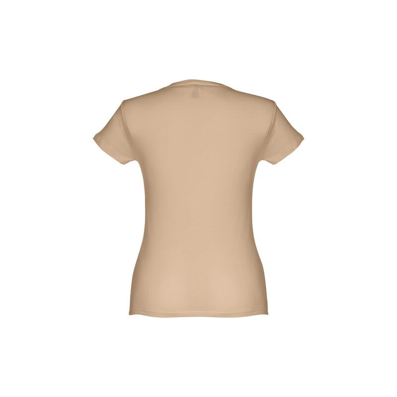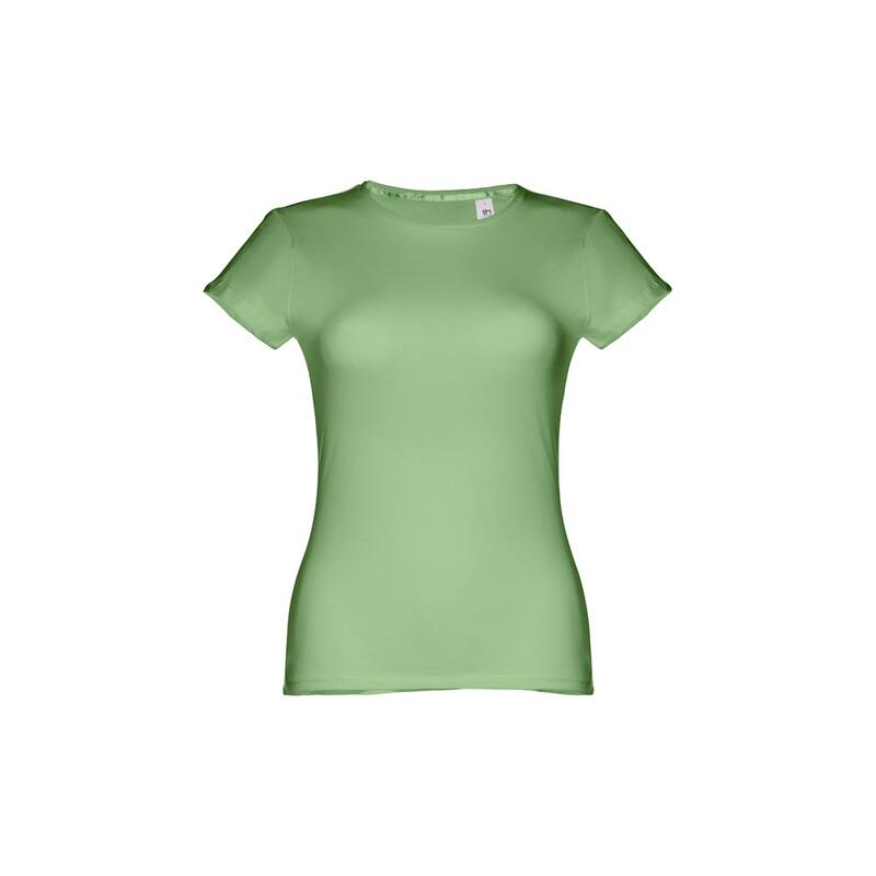Γυναικείο εφαρμοστό μπλουζάκι σε 100% βαμβακερή μπλούζα (150 g/m²) με λαναρισμένο βαμβακερό νήμα (χρώμα 183: 90% βαμβάκι/10% βισκόζη, χρώμα 196: 98% βαμβάκι/2% βισκόζη). Περιέχει ένα λεπτό διπλό κολάρο στη φανέλα που ενισχύεται από μια σατέν ταινία. Κομμένο και ραμμένο ένδυμα με διπλό ραμμένο στρίφωμα στα μανίκια και στο κάτω μέρος. Μέγεθος: S,M,L,XL,XXL