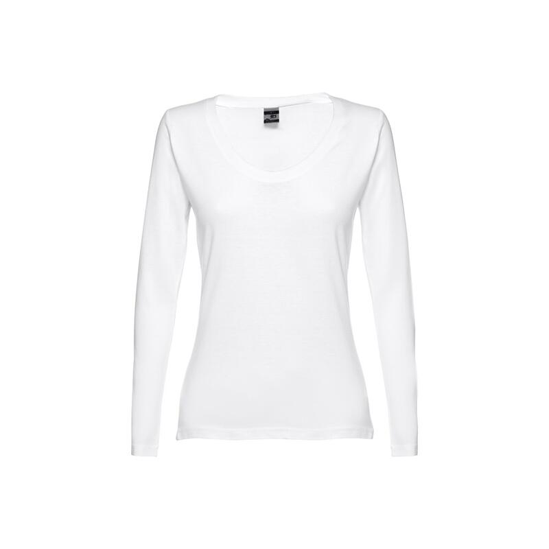 Μπλουζάκι με μακριά μανίκια, γυναικεία μπλούζα 100% βαμβάκι (150 g/m²) με λαναρισμένο βαμβακερό νήμα. Μοντέρνο κόψιμο με γιακά με κορδόνι οπλισμού. Κόψτε και ραμμένο κομμάτι με διπλή ραφή στα μανίκια και στο κάτω μέρος. Μέγεθος: S,M,L,XL,XXL