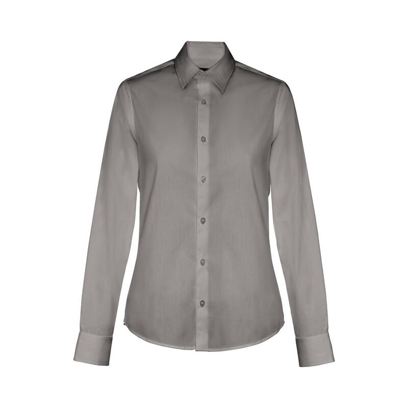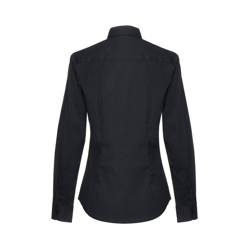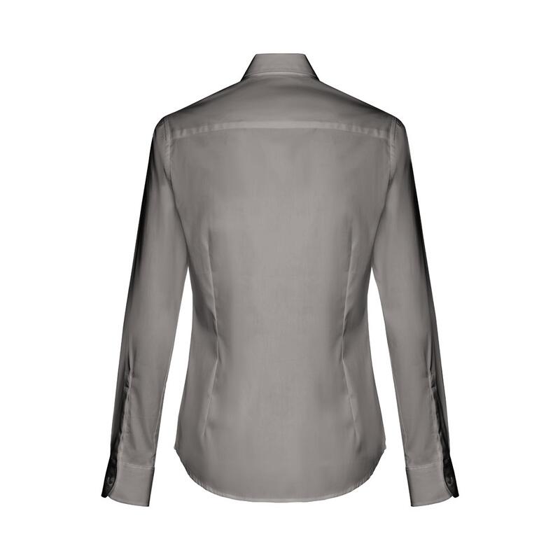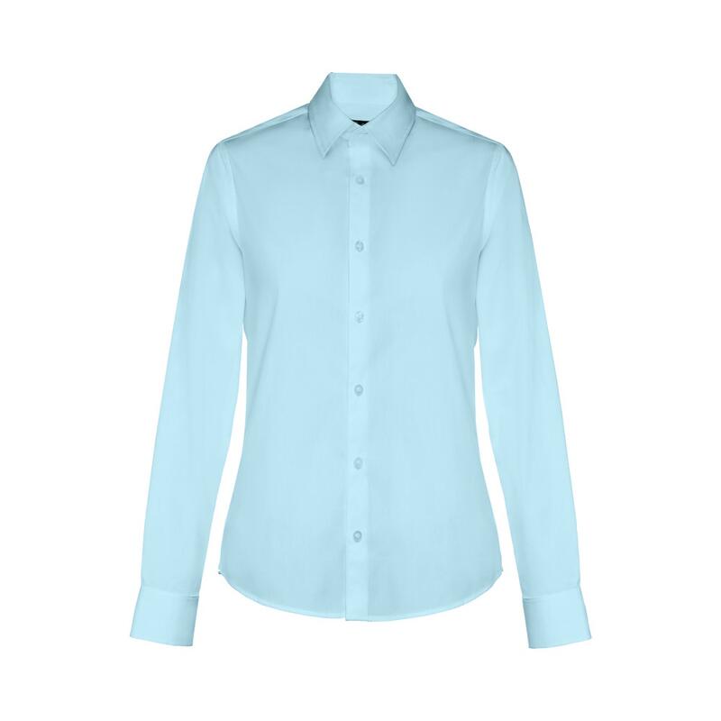 Μακρυμάνικο πουκάμισο για γυναίκες από 68% βαμβάκι, 28% πολυαμίδιο και 4% ελαστάνη (115 g/m²). Μακρυμάνικο με 1 πτυχή και ρυθμιζόμενα μανίκια με 1 κουμπί. Εφαρμοστή μέση με 2 ραφές στο πίσω μέρος και γιακάς με 7 αντίστοιχα χρωματικά κουμπιά. Μέγεθος: S,M,L,XL,XXL