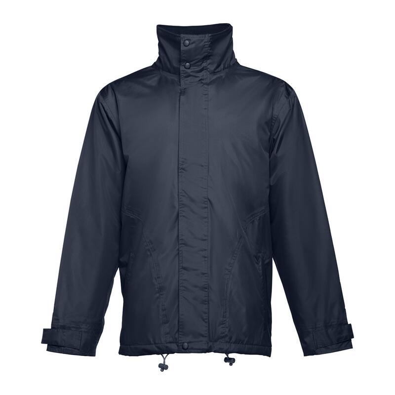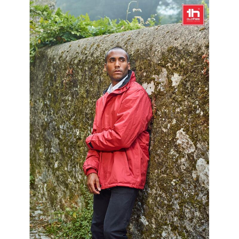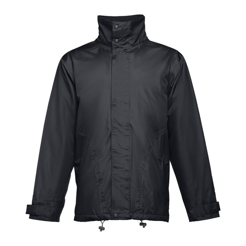 Μπουφάν με επένδυση (unisex) 100% πολυεστέρα (εξωτερικό: 240 g/m² 100% πολυεστέρα pongee 240 και αδιάβροχη επίστρωση PVC. Εσωτερικό 65 g/m² 100% πολυεστέρα ταφτά. Πλήρωση: πολυεστέρας 100% (80 g/m²). Περιλαίμιο με μαύρο πολικό πλέγμα (κλείνει με ιμάντα με γάντζο και βρόχο). Πτυσσόμενο κάλυμμα στο κολάρο, ρυθμιζόμενο μέσω μαύρων πωμάτων. Ανοιγόμενο πτερύγιο, χρωματιστό φερμουάρ, με γάντζο και βρόχο και μαύρο ελατήριο. Περιέχει 2 εξωτερικές τσέπες με πτερύγιο και 2 εσωτερικές τσέπες (1 για κινητό τηλέφωνο) με κλείσιμο με γάντζο και βρόχο. Εσωτερικά μανίκια 2x2 με ραβδώσεις και ρυθμιζόμενες εξωτερικές μανσέτες με ιμάντες με γάντζο και βρόχο. Θερμικά σφραγισμένες ραφές. Φερμουάρ με πρόσβαση στη κάτω πλάτη για εύκολη προσαρμογή. Μέγεθος: XS,S,M,L,XL,XXL