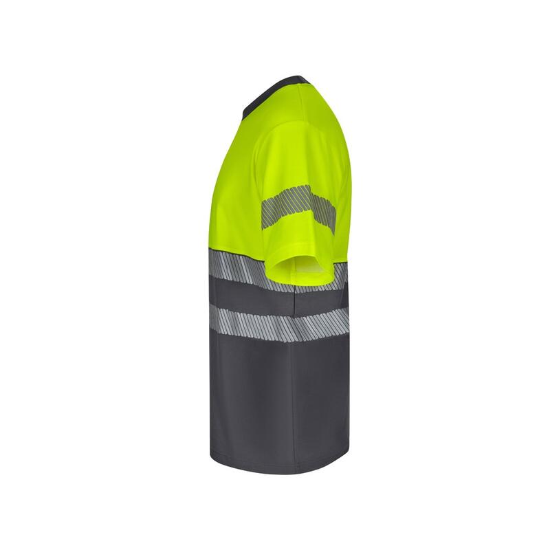 Δίχρωμο μπλουζάκι πικέ (150g/m²), από βαμβάκι (55%) και πολυεστέρα (45%). Κοντά μανίκια, με ριμπ στρογγυλό γιακά σε χρώμα αντίθεσης, τμηματικές αντανακλαστικές ρίγες στον κορμό και τα μανίκια. Προϊόν σε συμμόρφωση με τον κανονισμό ΕΕ 2016/425, πιστοποιημένο κατά EN20471 και με αριθμό κατηγορίας 1. Μέγεθος: S, M, L, XL, 2XL, 3XL