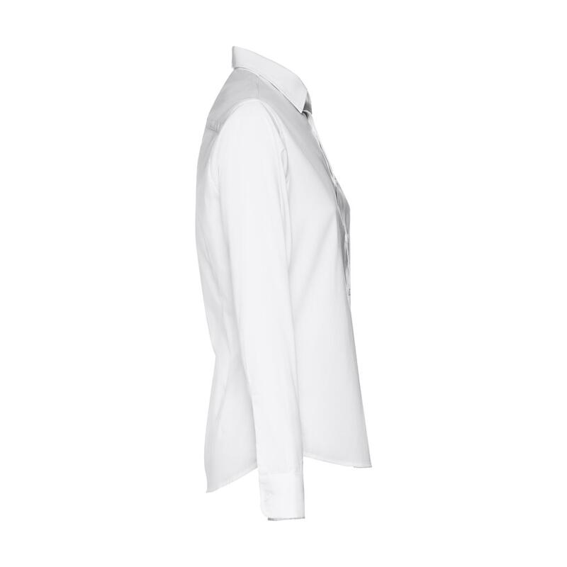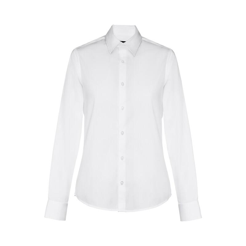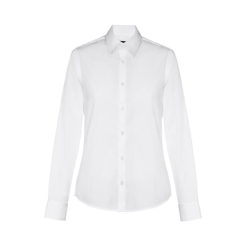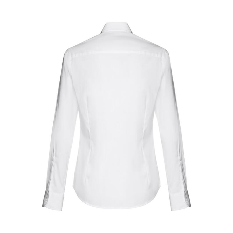 Μακρυμάνικο πουκάμισο για γυναίκες από 68% βαμβάκι, 28% πολυαμίδιο και 4% ελαστάνη (115 g/m²). Μακρυμάνικο με 1 πτυχή και ρυθμιζόμενα μανίκια με 1 κουμπί. Εφαρμοστή μέση με 2 βελάκια στο πίσω μέρος και παλέτα με 7 αντίστοιχα χρωματικά κουμπιά. Μέγεθος: S,M,L,XL,XXL