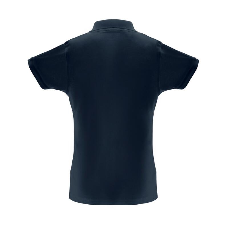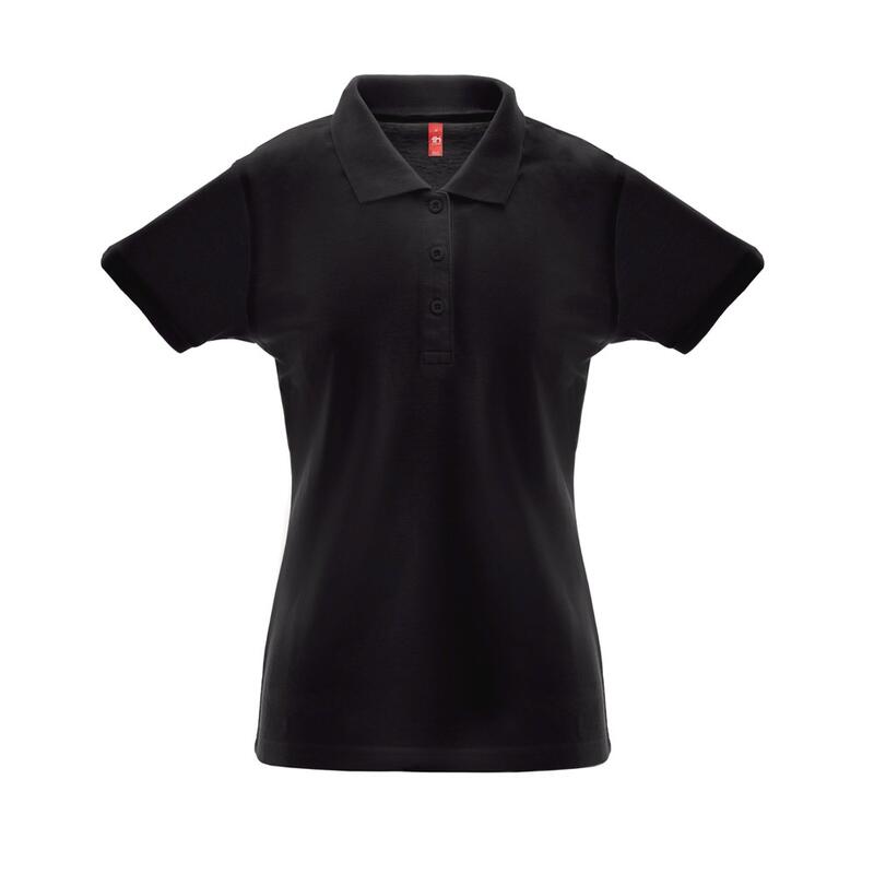 Κοντομάνικο γυναικείο μπλουζάκι πόλο από 35% πλεκτό βαμβάκι και 65% πολυεστέρα (200 g/m²).Fit γραμμή στη μέση με γιακά και μανίκια. Ενίσχυση στο κολάρο με πλεκτή πικέ κορδέλα. Περιλαμβάνει ενισχυμένο κολάρο με 3 αντίστοιχα χρωματικά κουμπιά (έξτρα κουμπί στην εσωτερική ραφή). Μέγεθος:S,M,L,XL,XXL